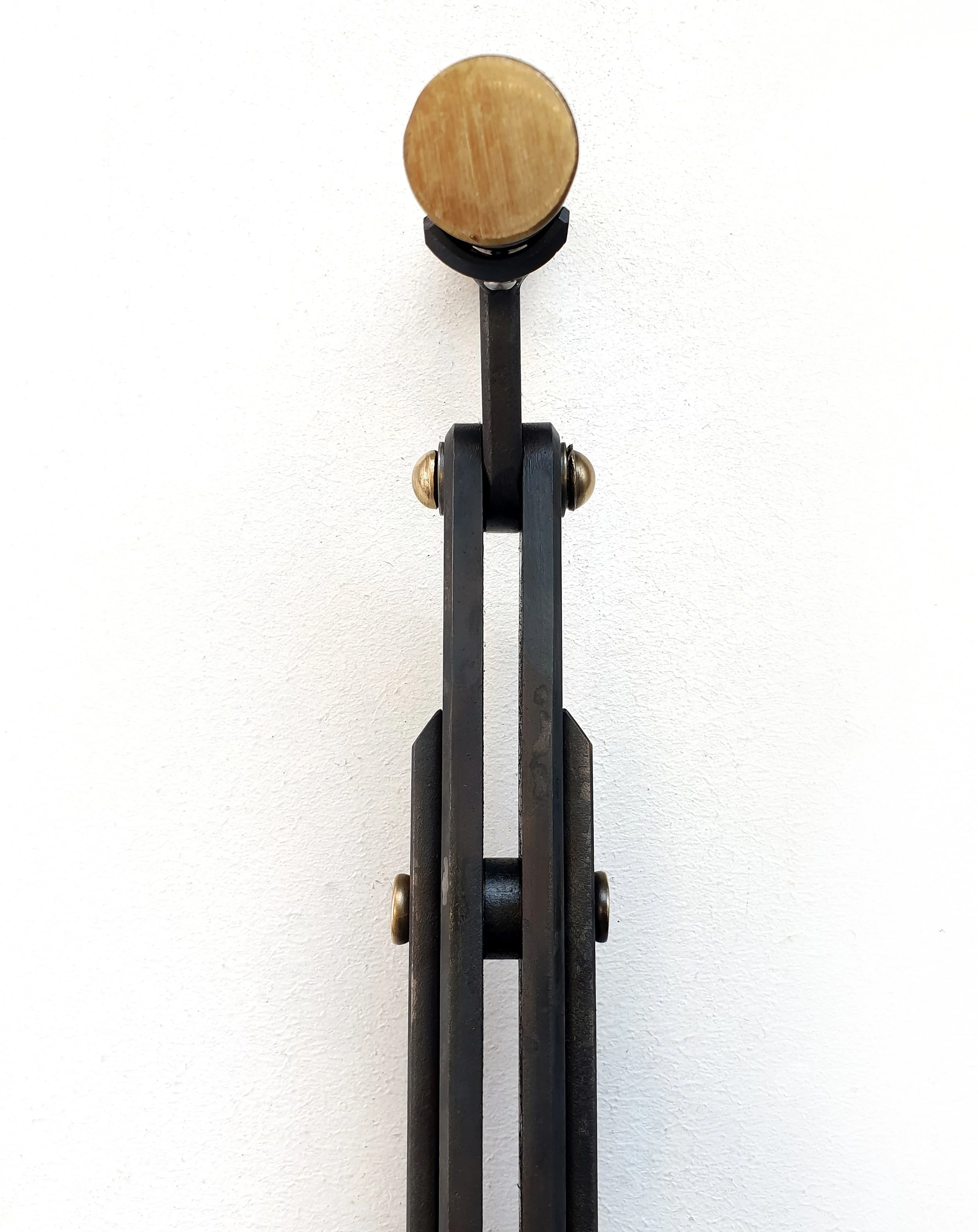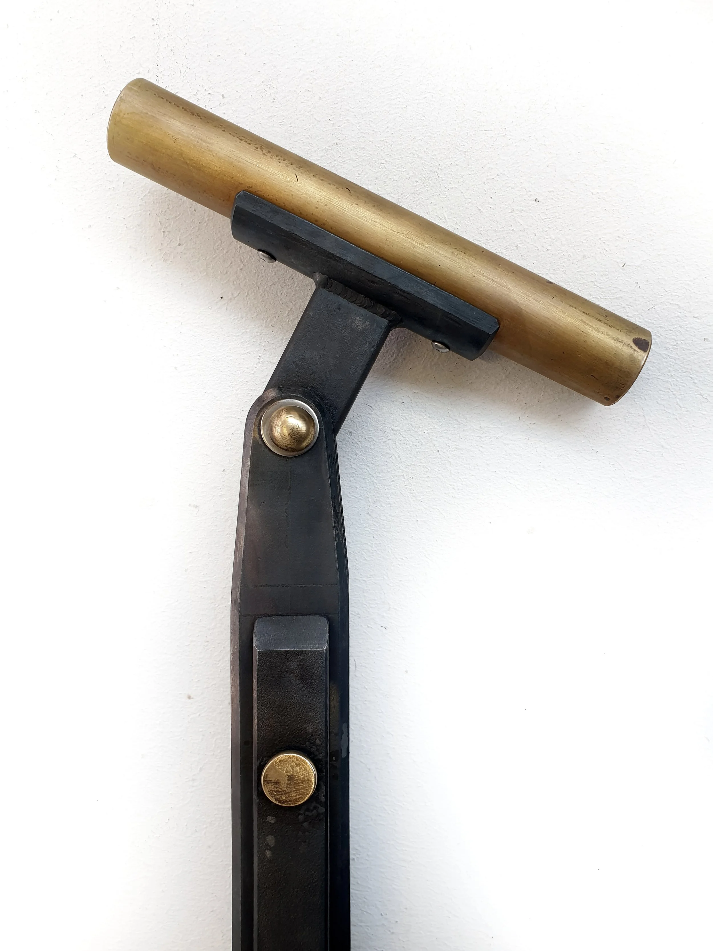 Ein Handlauf-Prototyp mit einem Zwischengurt, den ich während meiner Ausbildung bei Schmiede Lehmann in Hamburg entworfen und gebaut habe. Der Pfosten ist aus Stahl, Handlauf, Zwischengurt und Verbindungselemente sind aus geschmiedeter Bronze.